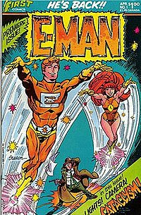 E-Man immediately grabbed me and didn’t let go. In the 70’s, the majority of superhero comics coming out of the Big Two were starting the swing toward darker themes, more adult storylines. Not so with E-Man. He was written with more of a humorous spin, wearing a bright orange & yellow costume. Born from the energies of a star going nova, this burst of pure energy gained sentience as it traveled through space in search of a home. Finding his way to Earth, the “Energy Man” made the acquaintance of Katrinka Colchnzski- brilliant college student by day, burlesque dancer Nova Kane by night- and took on the alias of Alec Tronn (heh) so that he could better walk among us and learn our human ways.