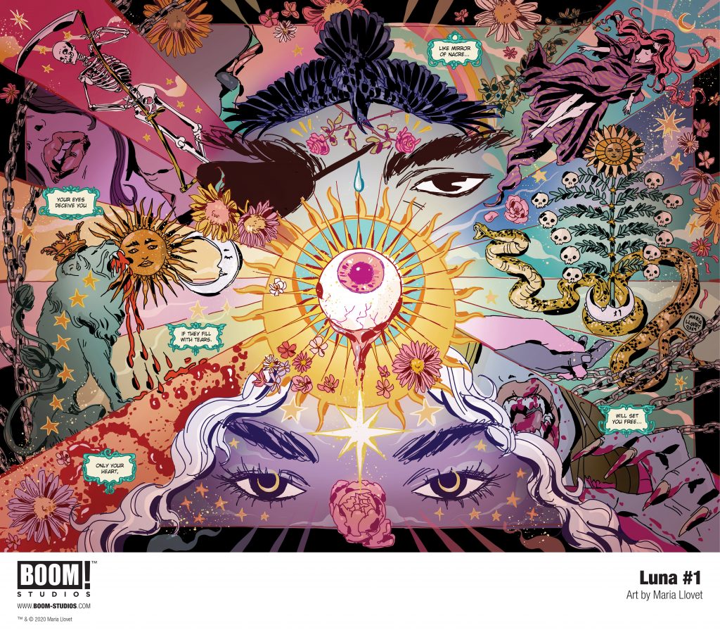 “LUNA is a lysergic story about love and destiny, but also betrayal, lies, and the lengths to which we would go in order to protect the ones we love.” said Llovet. “This is the first story I’ve ever written for the monthly comic book format, and I’m very excited to share it with readers everywhere.”