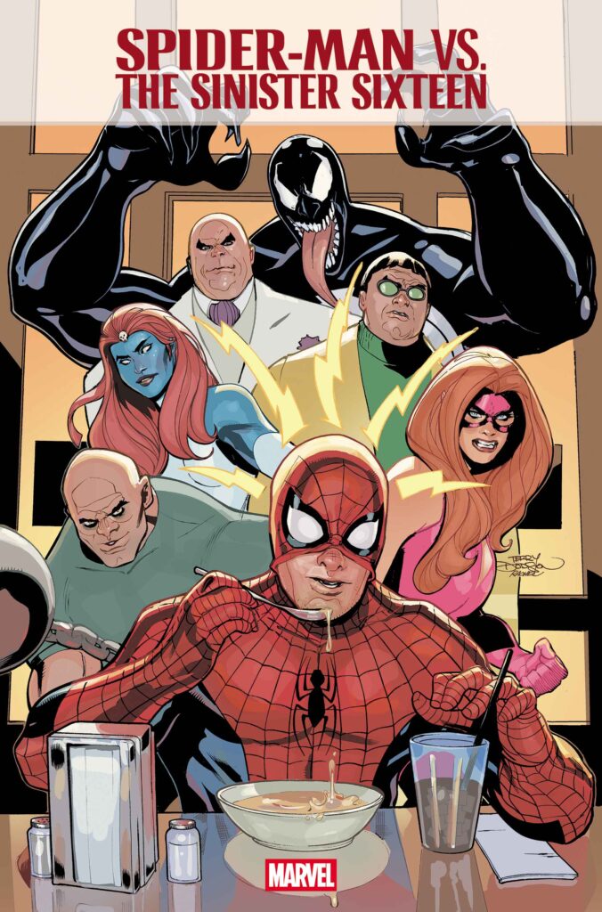 Peter Parker was just trying to have a nice night out with Mary Jane, but wouldn’t you know it: The Parker Luck has filled his evening with an assortment of some of the world’s most vile villains! With Spidey, Thor, Doctor Strange, Magneto, Loki, Doctor Octopus and many more all in one room, things are bound to explode!