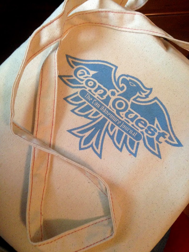 Built from a sturdy canvas binder, the journal is filled with prepared pages for your convention memories (high quality paper too!). Sections for autographs, panel notes, sketches, business cards, memory pages, and even a section for the city your visiting. This AND a black Sharpie for you to utilize. The creators of this journal are obviously fans and experienced con goers. As another added bonus, it comes with an awesome tote bag the came in very handy for the little things you don’t want to un-sling the pack back for. These guys know what the people want!