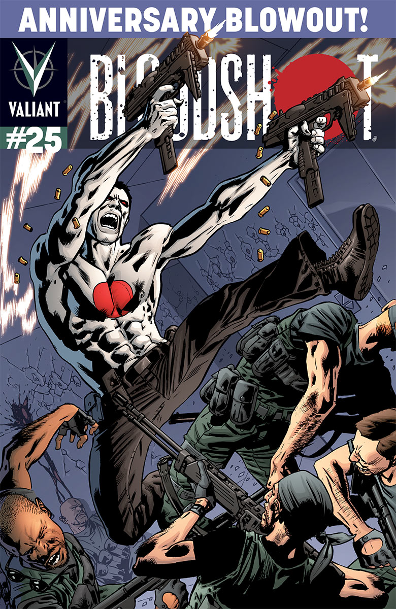 A murderer’s row of all-star talents is going all-in for an oversized, 48-page milestone anniversary blowout chronicling the classified history of Valiant’s most dangerous, most brutal, most relentless hero –BLOODSHOT!