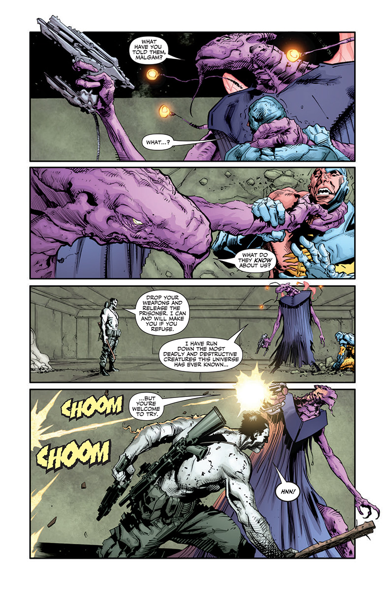 Something deadly has escaped and is running loose in the underbelly of America’s Military Extraterrestrial Reconnaissance Outpost (M.E.R.O.)! With all hands on deck dealing with the fallout of the Armor Hunters’ attack, it’s down to Bloodshot and M.E.R.O.’s number one officer, Colonel Jamie Capshaw, to stop the alien menace only known as…Malgam! Spoilers on: not everyone is going to get out of this in one piece!