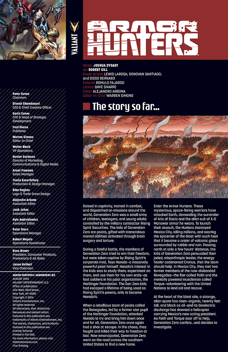 ARMOR HUNTERS: HARBINGER #2 (of 3) (VALIANT FIRST)Written by JOSHUA DYSART