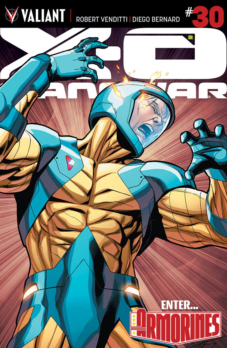 He survived NINJAK… He survived UNITY… But can X-O Manowar survive his first encounter with the all-new ARMORINES? Find out as Valiant superstars Robert Venditti and Diego Bernard present a pivotal new chapter in the saga of X-O Manowar in “ENTER: ARMORINES” – beginning on November 19th in X-O MANOWAR #30!