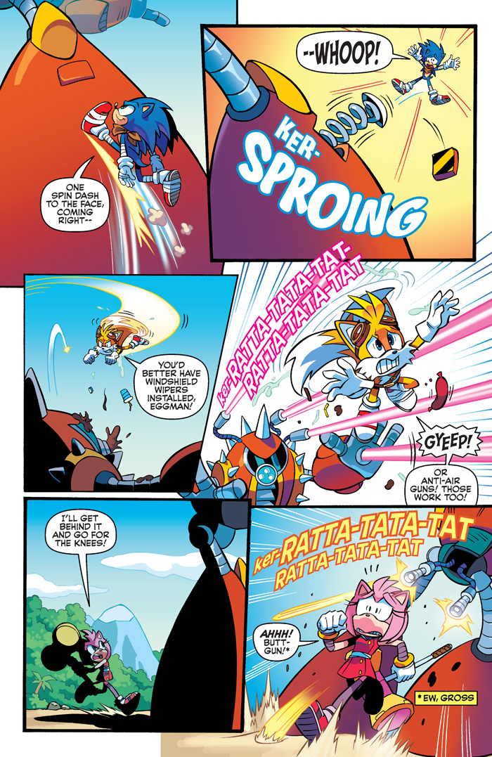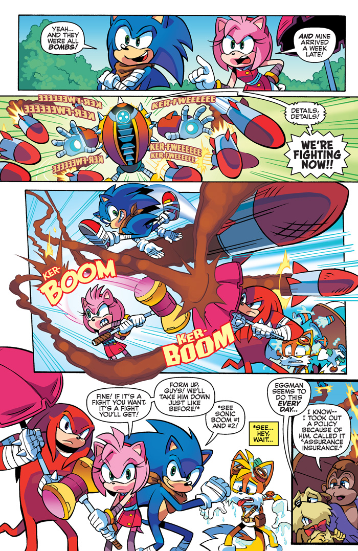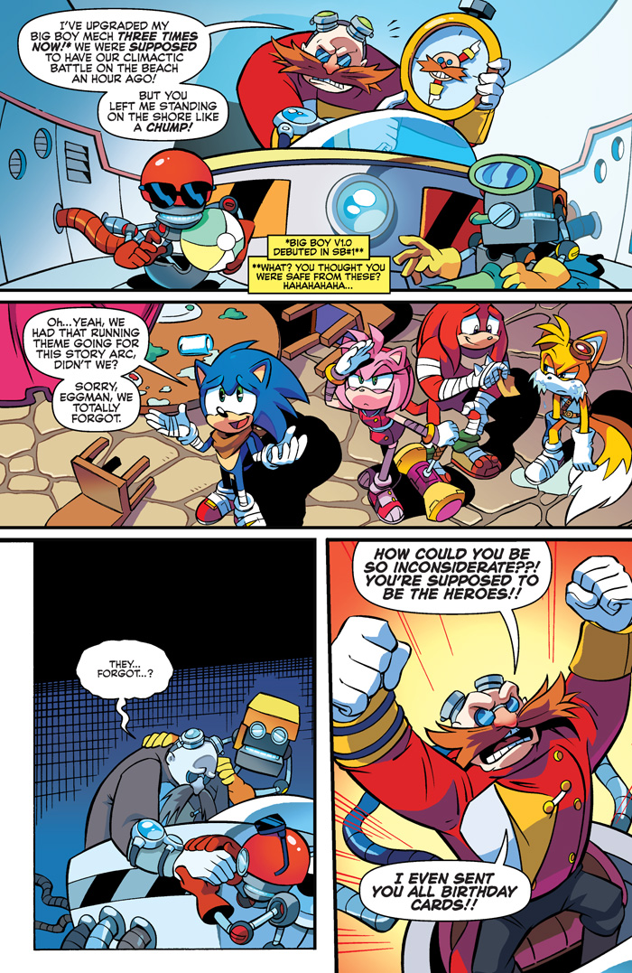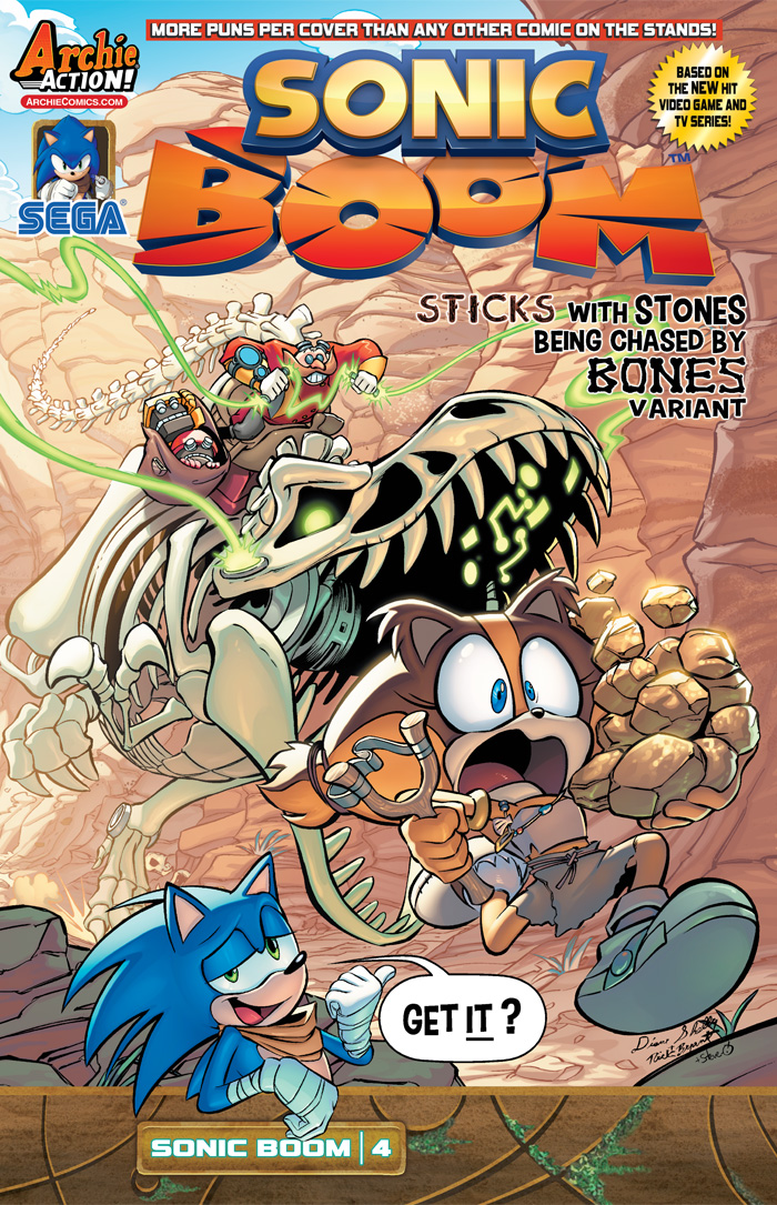 The NEW ONGOING SONIC COMIC BOOK SERIES from Archie Comics keeps on BOOMIN’ with Sonic Boom #4: Sticks and Stones! Dr. Eggman’s Big Boy mech has been refined into its final, deadly form. Sonic and his friends are on the ropes—but have no fear! Sticks has brought her secret weapon! It’s a… wait, seriously? This thinks THAT’s going to help?! Find out what her secret weapon is in the weird and wacky conclusion to the first story arc of the brand-new series SONIC BOOM! Featuring cover art from Sonic art guru Tracy Yardley and an all-new “Sticks-with-stones-being-