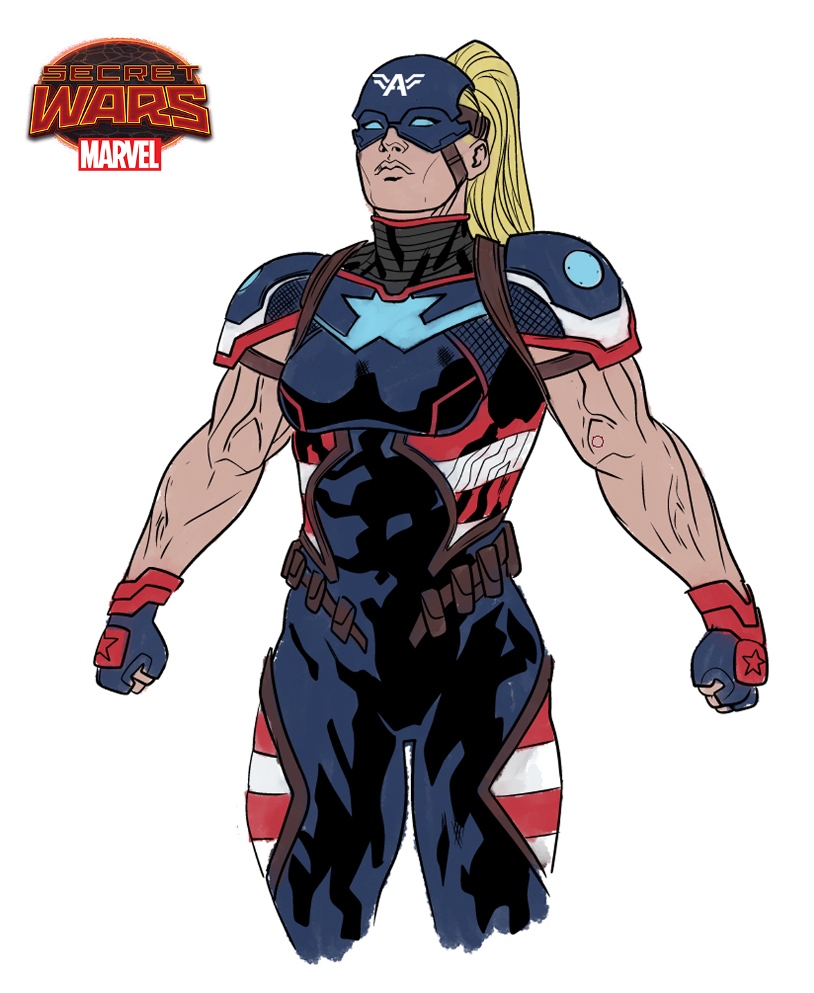 The patch-work surface of Marvel’s Secret Wars has now merged with Marvel 2099 and a new landscape has emerged as futuristic versions of your favorite characters, never-before-seen, make their first appearance and fold into the oncoming battle! Prepare to meet – the AVENGERS 2099 – Captain America, Iron Man, Black Widow, Hawkeye and Hercules! But in a world where megacorporations rule with an iron fist – what room is there for Earth’s Mightiest Heroes?