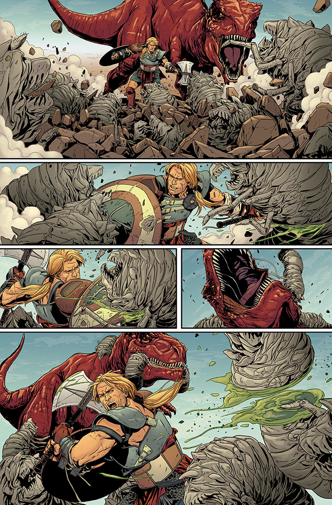 This May, embark on a desperate mission into uncharted territory as PLANET HULK #1 smashes its way into the WARZONES! Be there when Sam Humphries and Mark Lamming take you Greenland – Battleworld’s inhospitable northernmost territory. Teeming with an unchecked population of raging Hulks – their unparalleled destruction is the stuff of legend. Now, a battle-worn gladiator named Steve Rogers and his steadfast companion Devil Dinosaur must venture deep within Greenland’s borders in hopes of rescuing a friend. Only an army of Hulks now stand between them and their goal!