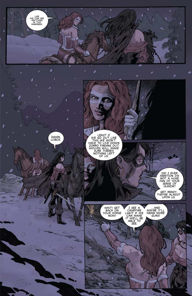 Now in hot pursuit of the slavers, Lady Zorro and Lady Rawhide run into a surprise winter storm just as they find the enemy! With foul weather in the mountains, it may not be bullet or blade that ends their lives but nature itself!