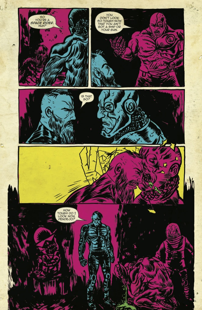 Alexis Ziritt’s (The Package) insane art is both a throwback to classics like Jack Kirby, Fltecher Hanks, and Heavy Metal Magazine, while still having a modern sensibility that showcases his own unique style . Writer Fabian Rangel Jr. (Doc Unknown) manages to tame that craziness and tell a compelling and very human story. Space Riders becomes that rare middle ground that has something for everyone while never compromising