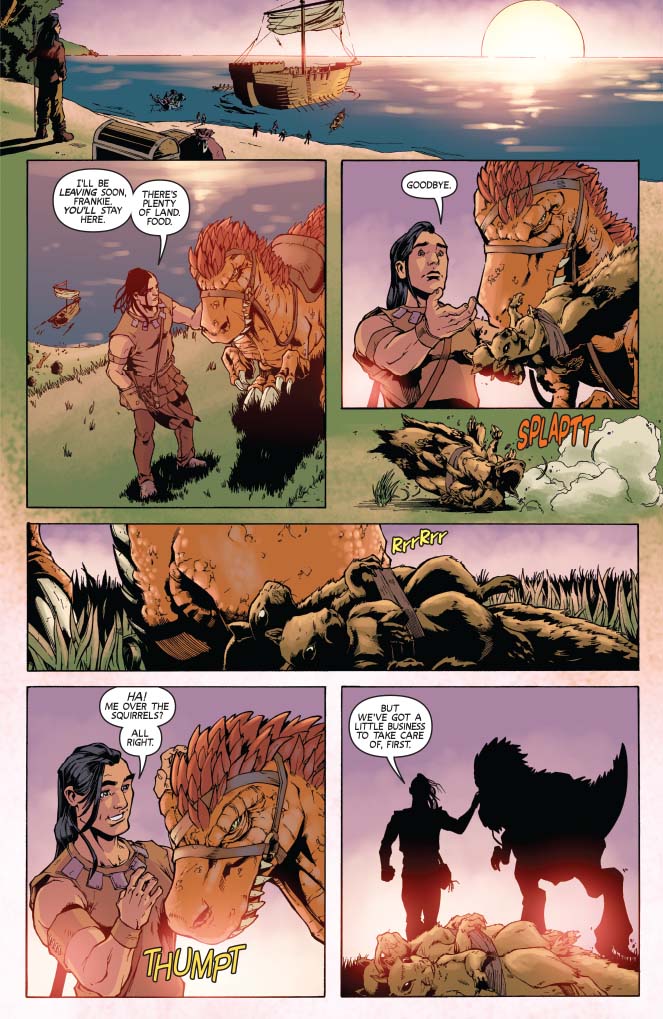 Life is difficult for Turok in the “civilized” England of the 1200s, where he’s treated as a savage despite being able to tame dinosaurs better than anyone. But a murder conspiracy against one of his allies will send the hunter deep into Sherwood Forest, and back in his natural element. In his attempt to survive this struggle for power, Turok starts to learn why dinosaurs still exist… while the Sheriff of Nottingham gathers crusaders, archers, and a menagerie of thunder lizards to wipe out Turok’s merry men!