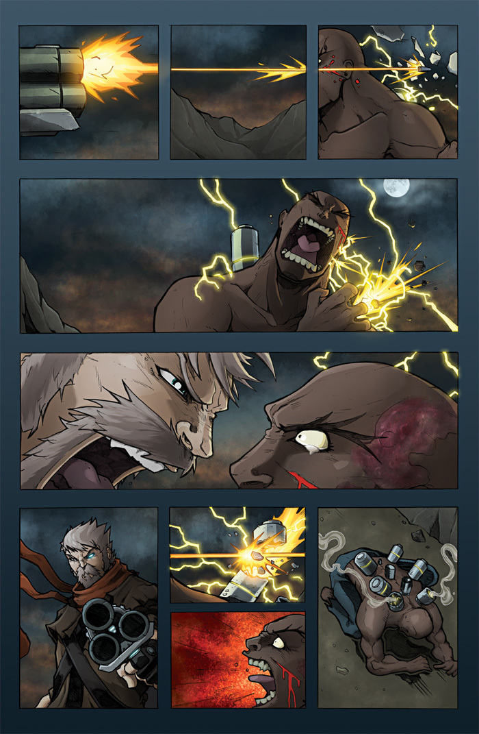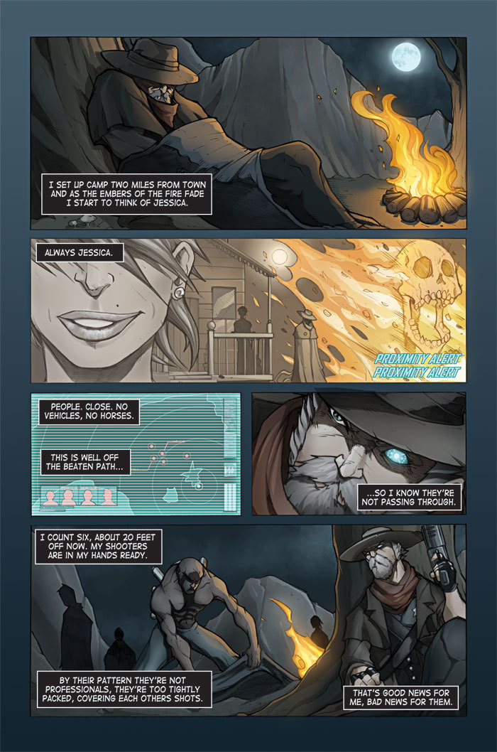 The artwork has strong manga ties, and that works out great for this kind of action driven book. The action is dynamic and firmly over the top, with a plethora of dusters flaring wide as pistols are drawn and the lead flies. Stylistically, this book should by all rights find a solid niche out there among the growing lists of independent comic distributors.