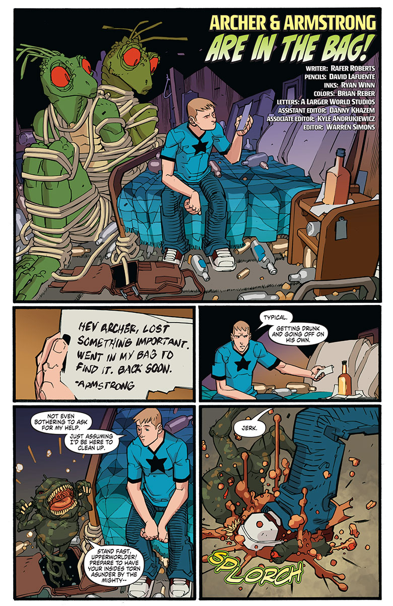 The other aspect that really sets Archer and Armstrong apart from the herd is that regardless of the consequences, despite the gravity of any given situation, there’s always the sense that these two are really just off on a spree, having a good time amidst the chaos and mayhem. The writing has always been witty and sharp, and Rafer Roberts holds up that standard perfectly. The banter between Archer and Armstrong gave me a few “laugh out loud” moments.