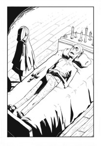 Chase Dunham has the joy of having to draw people at various stages of life, a walled city, and then some mystical beings and really athletic action to boot. He doesn’t have glorious colors to fall back on, yet you can feel them like you do in a black and white movie.