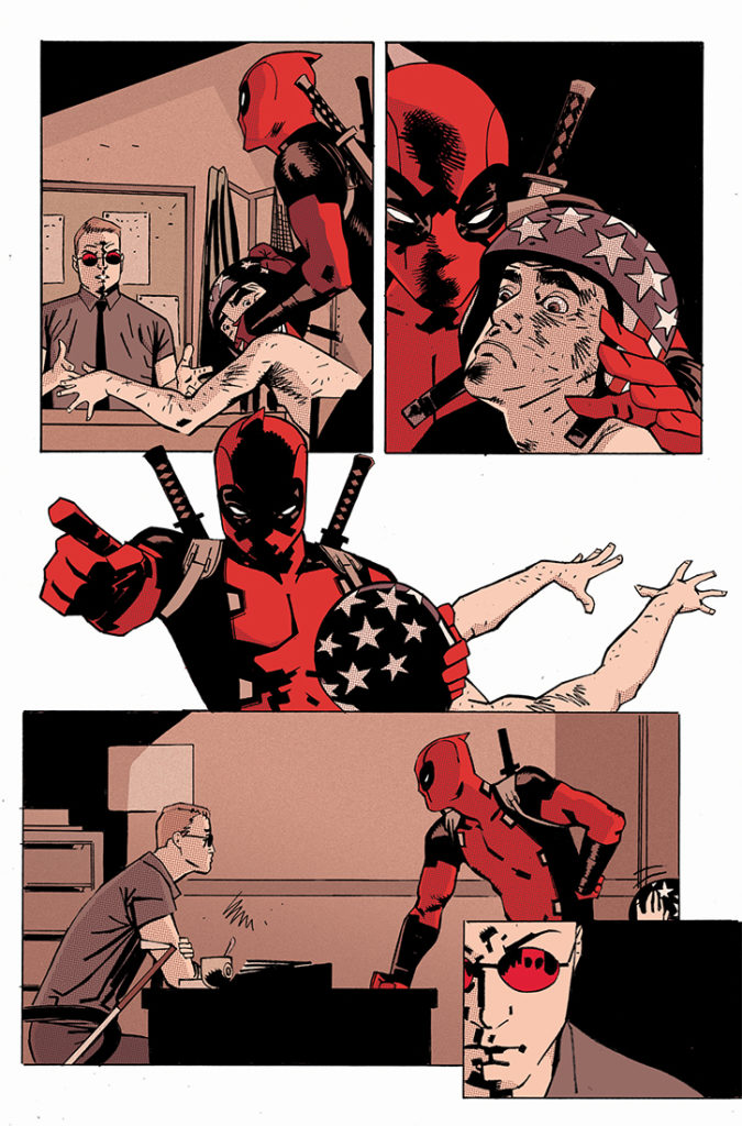 What do you get when you take a Merc With a Mouth, two Heroes for Hire and a Man Without Fear and mash ‘em together? Why, the massively oversized DEADPOOL #13 of course! This June, this quartet of heroes collide in the first-ever 4-part crossover in one issue! We’re not joking – this issue contains two full issues of Deadpool, one issue of Power Man and Iron Fist and one issue of Daredevil! Writers Gerry Duggan, David Walker and Charles Soule join forces with artists Jacopo Camagni, Guillermo Sanna, Elmo Bondoc and Paco Diaz to bring you one for the history books! When Deadpool takes a gig protecting a banker who betrayed his nefarious cartel partners, they seek the help of ADA Matt Murdock, who calls in the assistance (and fists) of Luke Cage and Danny Rand! Things are going to get ugly. Get ready for a mega-violent, street-level, gut-busting, face-punching, kung-fuing, ninjitsuing crime story you won’t want to miss! It all goes down this June when DEADPOOL #13 explodes into comic shops everywhere!