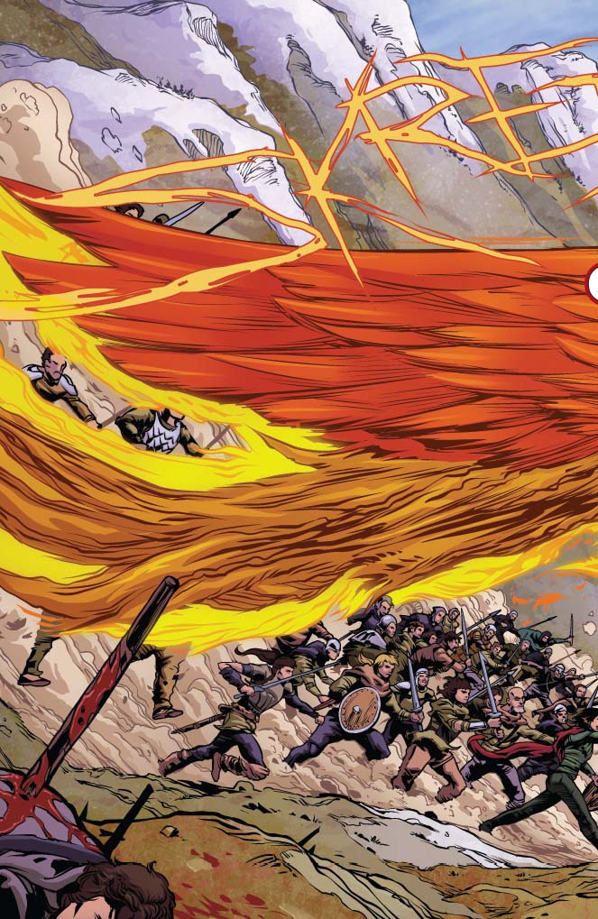 In the second of our two-part finale, the Hyrkanian forces clashes, sister against brother, in bloody civil war for the Falcon Throne. Revelations, explosions, betrayals, and triumph await as the soul of Hyrkania – and Sonja herself – hang in the balance.