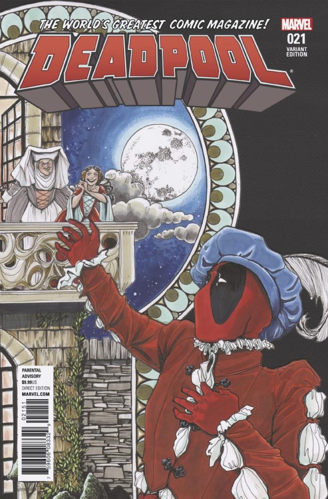 This October, the Merc With a Mouth is crashing headlong into Marvel NOW! and he’s bringing William Shakespeare with him! Today, Marvel is pleased to present your first look inside DEADPOOL #21 – the colossal 80 page issue coming to comic shops and digital devices on October 26th! First up, witness the the return of one of Deadpool’s greatest adversaries as Madcap returns to the fold in a brand-new full length adventure from Gerry Duggan and Mateo Lolli! No one has pushed Deadpool to the limit quite like Madcap. Is Wade ready to face him again? Then, Deadpool goes Shakespeare for an all-new 60-page tale from writer Ian Doescher (William Shakespeare’s Star Wars) and artist Bruno Oliveira! Those old plays from English class just got a lot more interesting. Don’t say we never taught you anything! Be there for the tales of the bard as you’ve never seen them before when DEADPOOL #21 comes to comic shops and digital devices on October 26th!