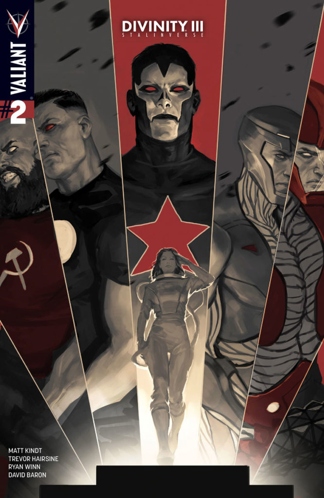 But first… It all begins on December 21st as the Iron Curtain rises over a once-free world in DIVINITY III: STALINVERSE #1 (of 4) – the FIRST ISSUE of the winter’s major comics event from the visionary creative team of New York Times best-selling writer Matt Kindt (4001 A.D.), blockbuster artist Trevor Hairsine (X-Men: Deadly Genesis), Harvey Award-nominated inker Ryan Winn (X-O MANOWAR) and master colorist David Baron (BLOODSHOT REBORN, Planetary)!
