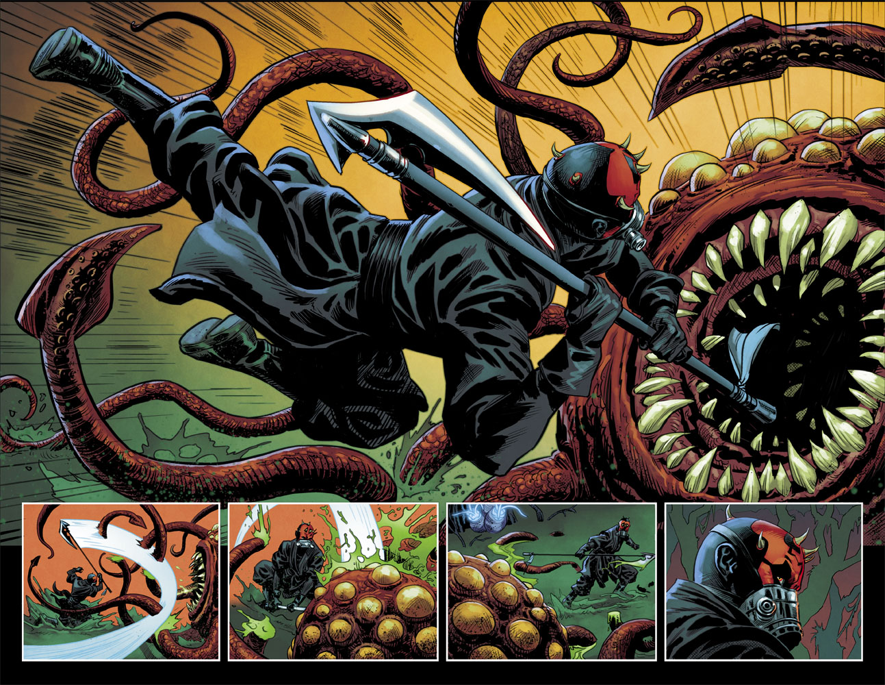 This February, hatred has a new face. But first, Marvel Entertainment & Lucasfilm Ltd. are pleased to present your first look inside STAR WARS: DARTH MAUL #1 – the next thrilling Star Wars limited series comes to comic shops and digital devices everywhere! Blockbuster writer Cullen Bunn (Deadpool Kills the Marvel Universe, Monsters Unleashed) and artist Luke Ross (Star Wars: The Force Awakens Adaptation) take you inside the mind of Darth Sidious’ star pupil as he embarks on a personal quest – with deadly consequences!