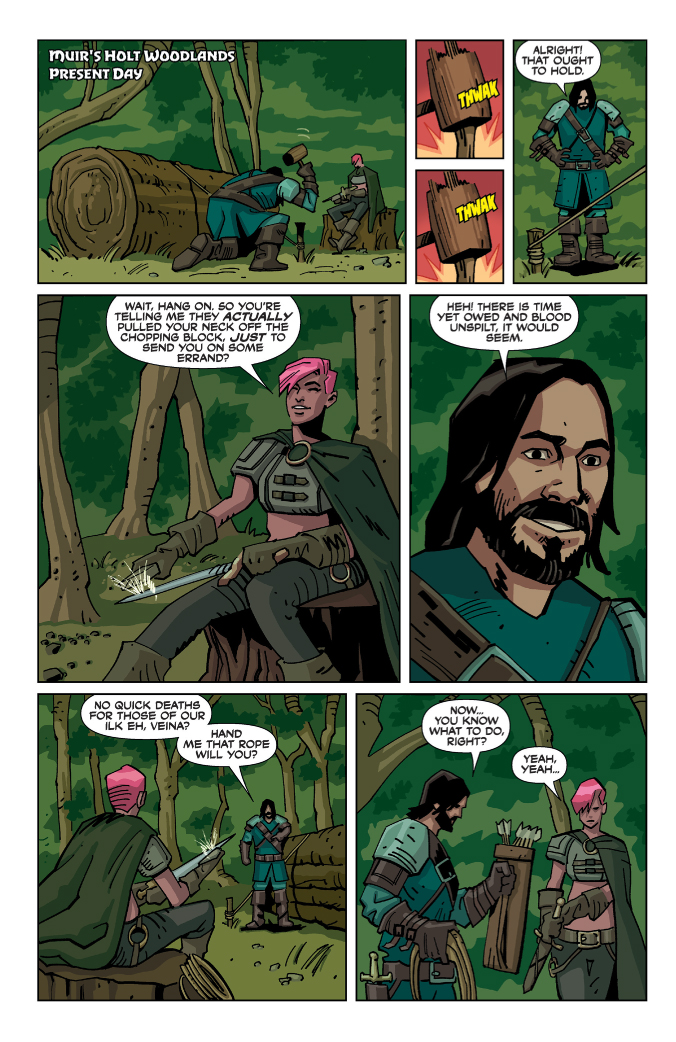 If you’ve been following along, you already know that I’ve had a lot of good things to say about the opening story arc in the series Brigands from Action Lab’s Danger Zone. I won’t bother you with more heaps of praise and gushing kudos, because frankly I wouldn’t want to put the creative team on the spot like that. Lord knows they’ve heard enough. But, just in case you haven’t been keeping up on this gritty series that blends fantasy action with the heist drama (think Ocean’s 11 with swords), check out the links below. The first two are my reviews, and the third is an interview I did with the series creator/writer Ram V.