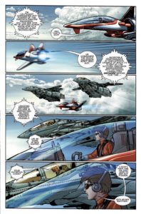 For the Titan Comics reboot, artist Marco Turini eschews visual style of the anime source material, yet maintains a unique and identifiable Robotech vibe. This decision was a good one– as great as classic visual styles were in the day, modern technology, storytelling, and visual flair must be employed to bring classic franchises like Robotech to a new audience. Turini’s artwork is clean, energetic and doesn’t hang too heavily on the anime aesthetic as a shorthand. (The same cannot be said of some of the variant covers, but that’s a conversation for another time and another place.)