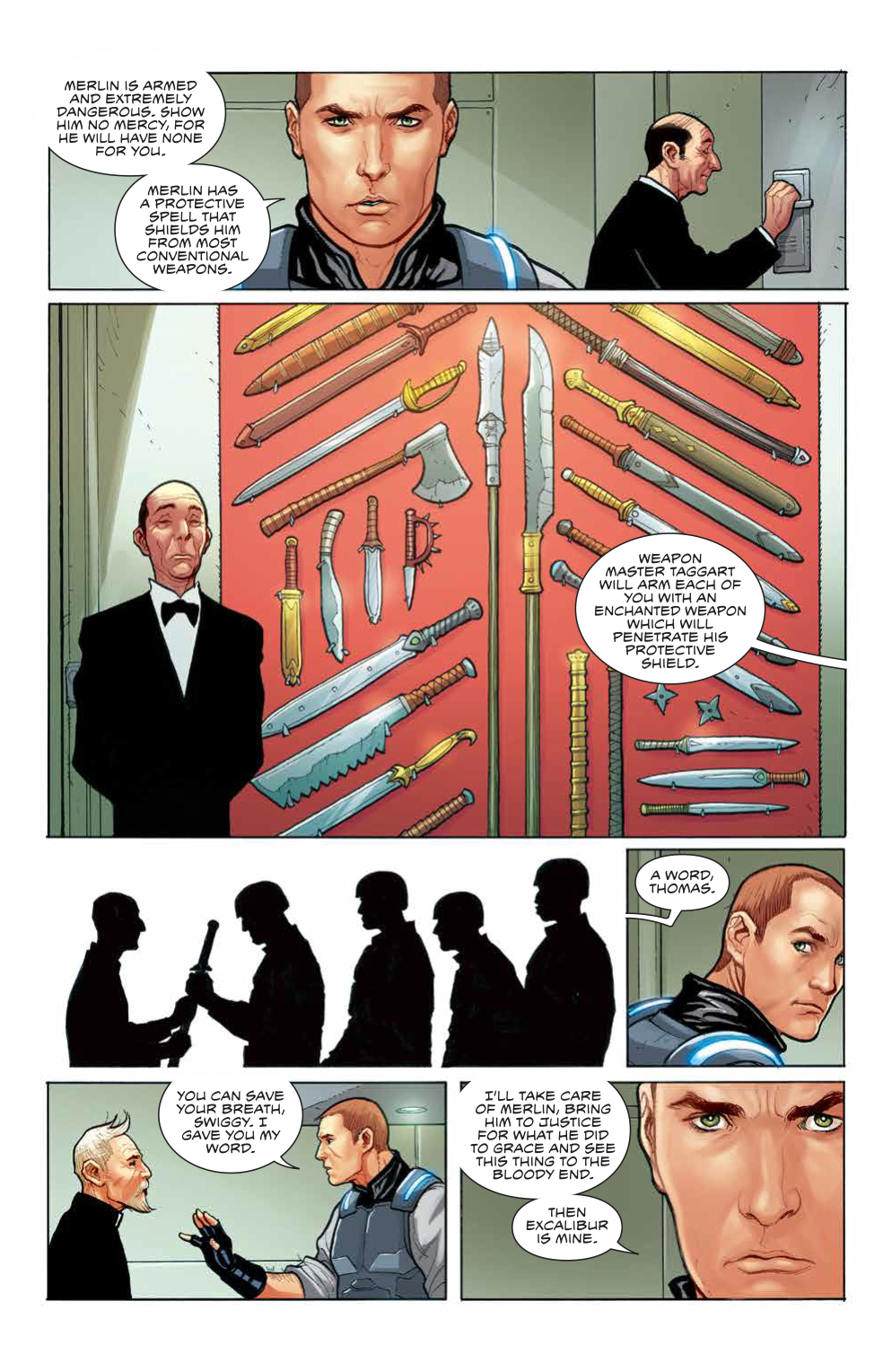 On the upside, the series is very binge-worthy, as it gave me an excuse to go back and re-read the previous issues again. This gave me the chance to settle in and consider some of the underlying themes of Cho’s story- primarily, Thomas Skybourne’s true motivation behind his return to the Mountaintop Foundation. Sure, there’s the apocalyptic consequence of Merlin’s endgame… seems the wizard’s gotten it into his head that mankind has made a mess of things and the world would be better off without us (some days, it’s not easy to refute that logic). But that isn’t really what pulls Thomas back into the game. Above all else, Thomas wants to wield Excalibur, the sword that cut through his sister’s impervious skin and by all accounts ended her immortal existence.