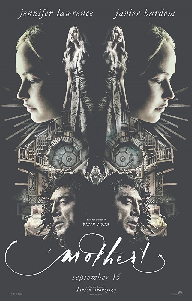 Mother! was written and directed by Darren Aronofsky, who is also known for directing Black Swan and one of my personal favorites Requiem for a Dream and stars Jennifer Lawrence (Hunger Games series, X-Men series, etc.) and Javier Bardem (No Country for Old Men, Skyfall, etc.).