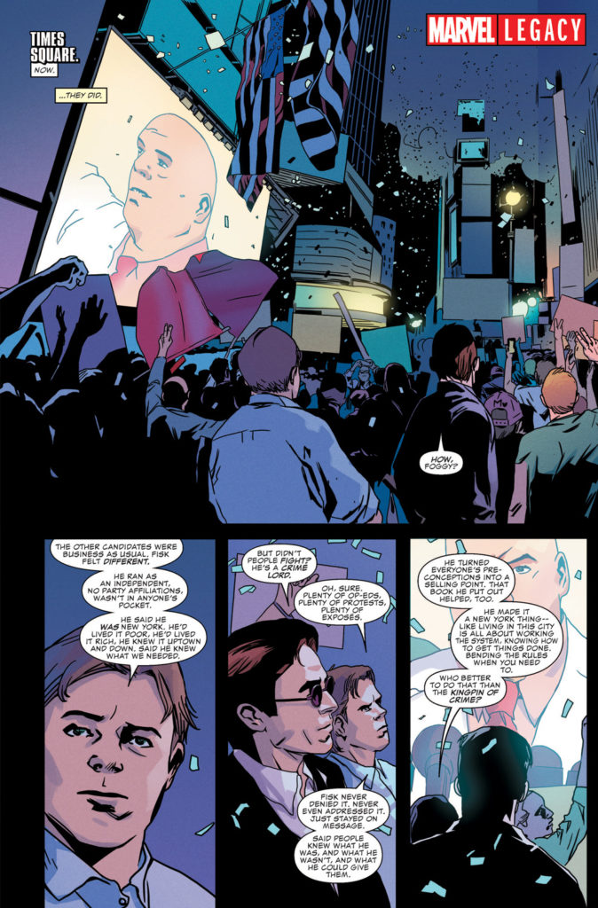 There’s a new mayor in town…Mayor Fisk, that is. After his rise to the top, Matt Murdock’s classic foe takes center stage as Marvel Legacy hits DAREDEVIL #595, written by Charles Soule with art by Stefano Landini.