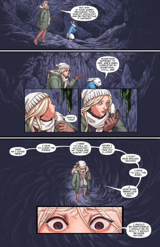 As cheer fills the air, Faith “Zephyr” Herbert is about to take a trip down the rabbit hole… and into a mind-bending winter wonderland where every day is something special! But hiding behind the tinsel, all is not what it seems… White rabbit meets red-nosed reindeer as Faith squares off against a realm of make-believe and merriment for a whimsical flight of superhero fancy!