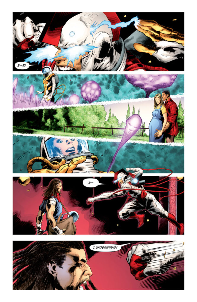 At the farthest edge of human understanding, Abram Adams – the lost cosmonaut called Divinity – and his comrade, Myshka, have discovered the purpose of their existence in this universe… and in the next one beyond our own. Now, as a seemingly infinite pantheon of mythic gods and cosmic beings rises to meet them head-on, they’ll be forced to ignite a maelstrom of untold proportions to save their child from a fate worse than annihilation…
