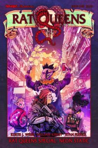 Fans will experience a cyberpunk take on the RAT QUEENS by Kurtis J. Wiebe and Will Kirkby from Image/Shadowline this July in an electrically thrilling one-shot, RAT QUEENS SPECIAL: NEON STATIC.