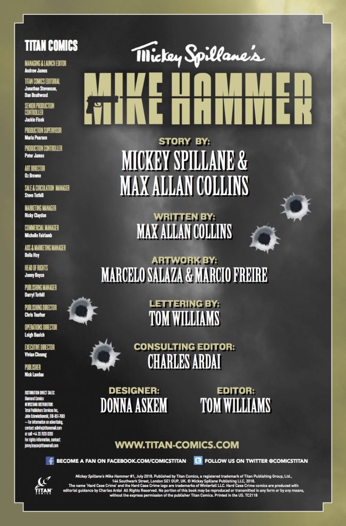 Mickey Spillane’s Mike Hammer is part of Titan’s wider year-long celebration of Spillane’s work and legacy which includes the Titan Books publication of Killing Town, the very first Mike Hammer novel, begun by Spillane around 1945 and recently completed by Collins. Killing Town had been set aside by Spillane to write his and Hammer’s famous 1947 debut, I, The Jury; and Hard Case Crime publication The Last Stand — Spillane’s never-before-published final novel — was completed by Spillane just before his death in 2006.