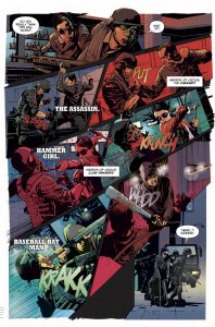 Now, I really hate to say it, but Ollie Masters is going to be take it on the chin for this one. I’m not saying his writing is sub-par at all… far from it. I think his humorous use of captions to point out the different players and the roles they play was great. For something like The Raid the dialogue is pretty much secondary- watch the movie with the captioning off and I think you’ll see what I mean. I have to believe that not only is Masters aware of the challenge ahead of him, but also that he’s got his sleeves rolled up and is determined to dive in and have some fun with it all. From what I’ve seen so far, that’s pretty much supported by the work he’s has done so far in this opening issue.