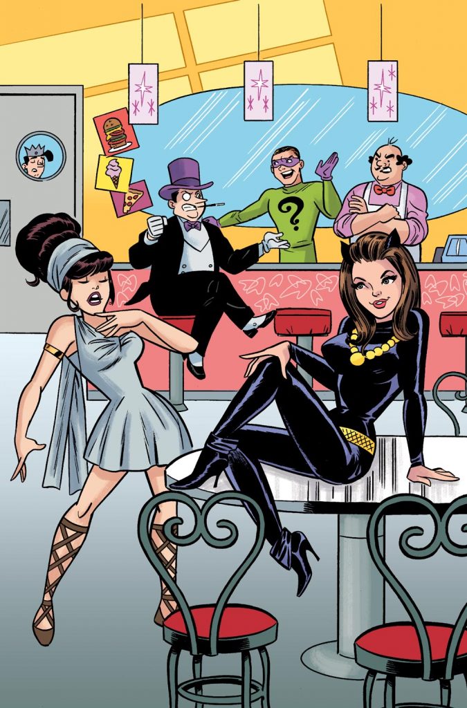 The historic crossover mini-series rolls on! Gotham’s villains have infiltrated Pop’s Chocklit Shoppe to enact their plans of mind control! But when one of Pop’s best customers sees the action taking place, will he be able to let the others know, or will the joke be on him?