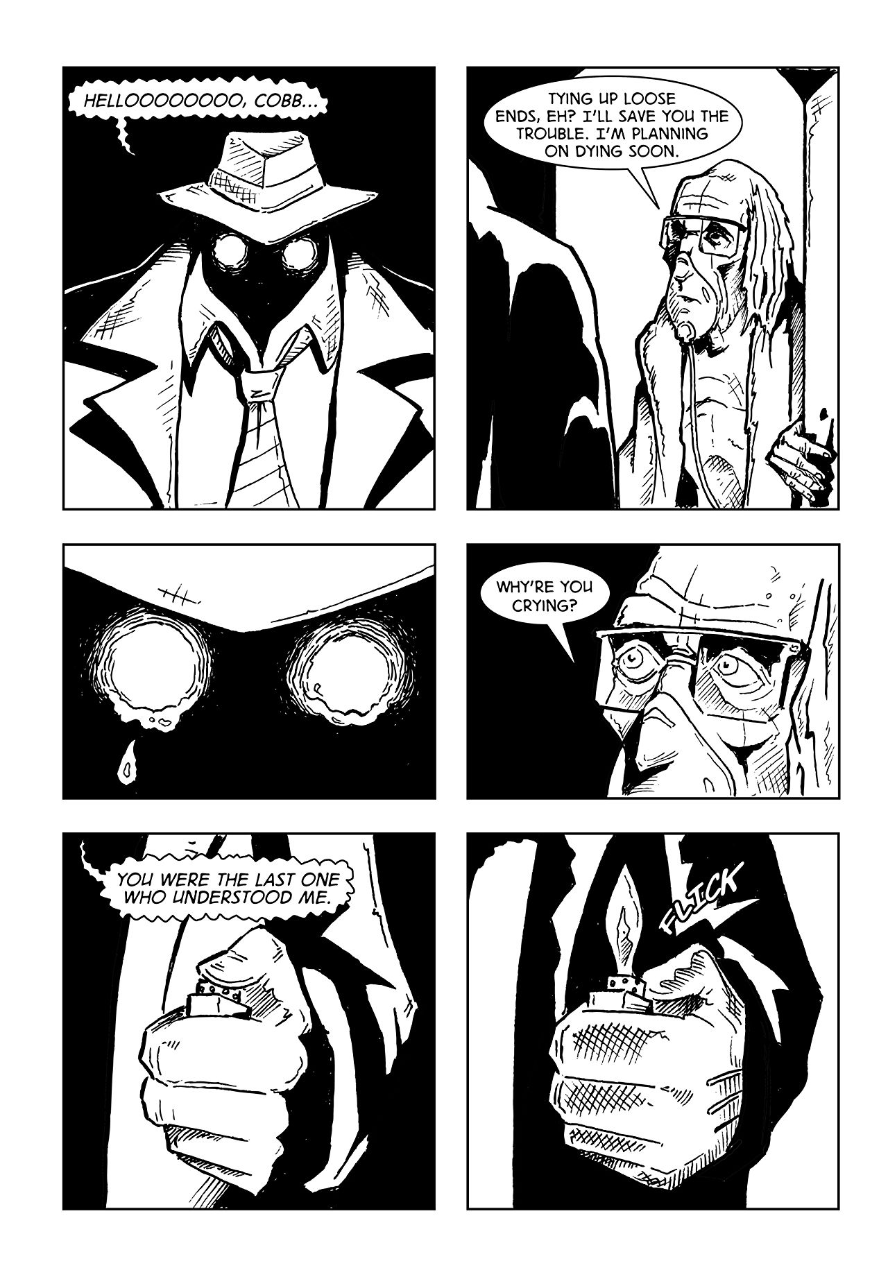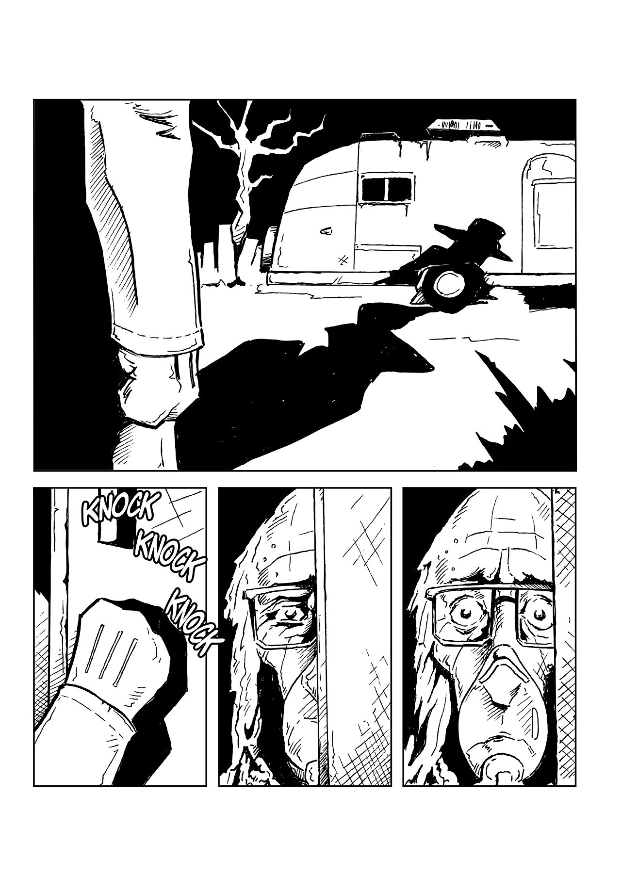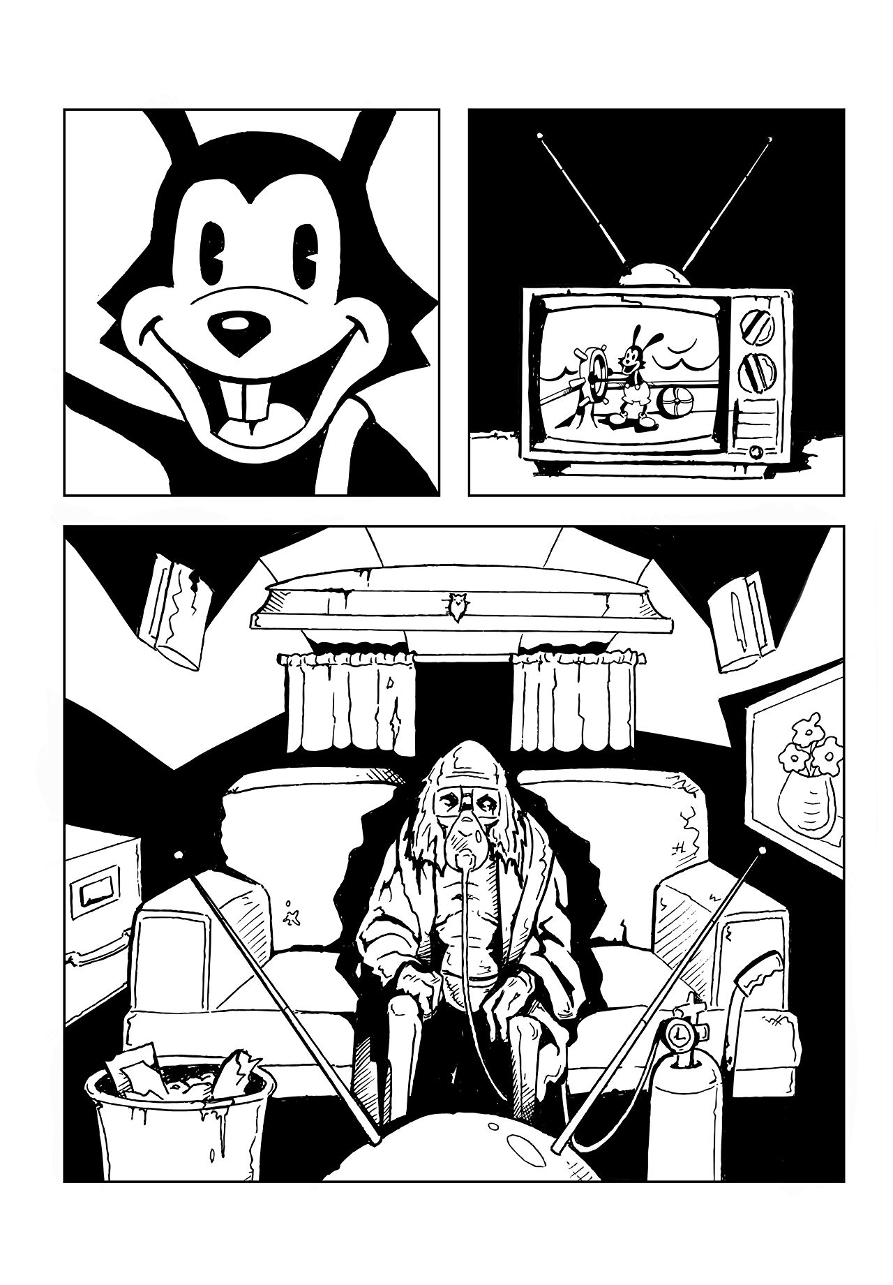 Like any good pulp-noir graphic novel should be, The Happiest Place makes full use of black and white as a fully functioning part of the storytelling. Each chapter employs the talents of a different artist, each with his own unique take on the book’s visual style. Bookending the effort is Harry Chaskin himself, bringing a lot of experience to the page with credits working for Disney, Adult Swim, Warner Bros. among others. The rest of the story is rounded out with some great work from Todd Ulrich, Jasey Crowl, Terrance Zdunich, John Sumner, & Bernie Gonzalez. Each of these artists employs their own style, and they all bring something unique to the table in telling Miles Manning’s tale. If they do have one thing in common, it’s that every one of them is able to convey a lonely life full of awkward and uncomfortable moments. And make no mistake at all… contrary to its name, The Happiest Place is full of uncomfortable, slightly left of center, often cringe inducing moments on the page.