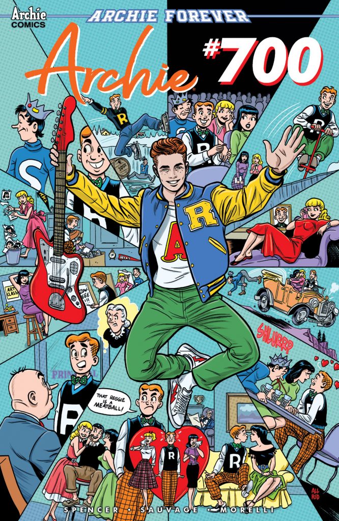 A brand-new era of ARCHIE begins in this landmark 700th issue of our flagship series! Join the new creative team of writer Nick Spencer (The Amazing Spider-Man) and artist Marguerite Sauvage (DC’s Bombshells) as they take a trip to Riverdale and bring Archie, Betty & Veronica, Jughead, and the rest of the town along for a wild ride complete with new mysteries, new relationships, and much more!