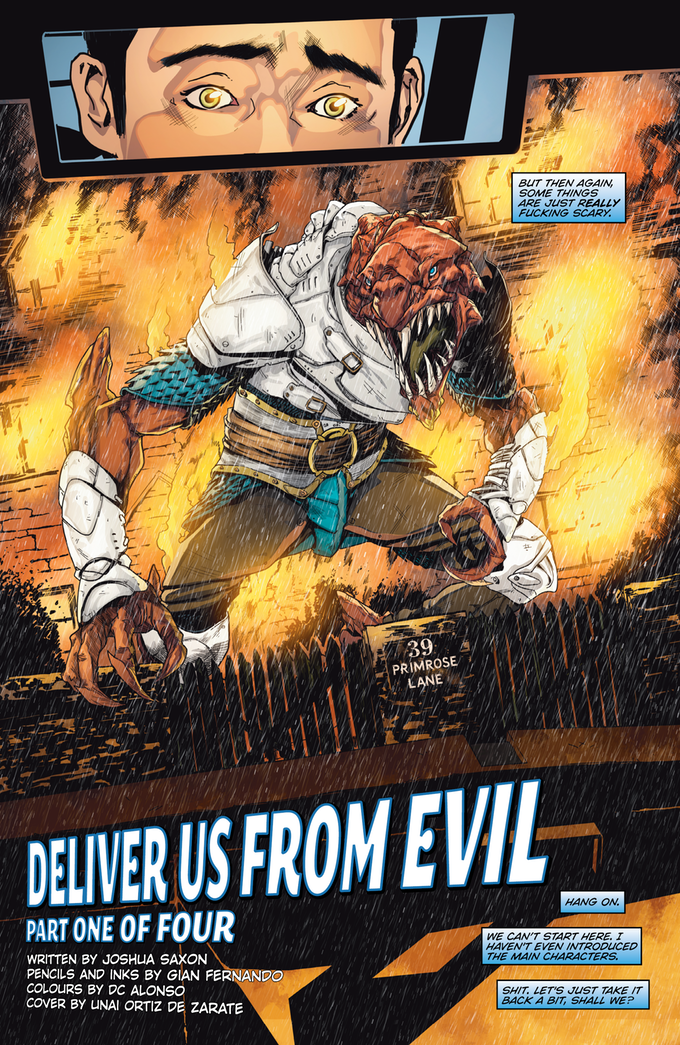 The final key ingredient, serving to round out Fernando’s artwork, comes from DC Alonso. He sticks the landing with his work on the colors, giving the world a sense of weight and depth that’s lacking in some larger comic titles. The backgrounds in particular are a great showcase for Alonso’s work, especially in respect to his use of lighting effects. From the lightning storm in full swing at the beginning of the book, to the fires that plague Crafton Hill as the invasion begins, it all serves to show a sense of a world in motion. The foreground is great, all the characters running around and doing their thing, but with everything going on in the background- burning, sizzling, sparking- Milky’s world takes on a life independent of its unassuming heroes and larger-than-life villains.