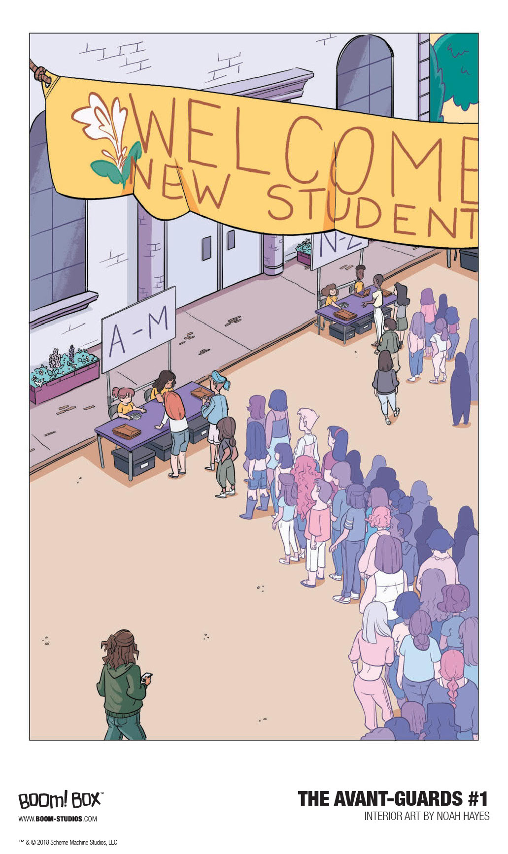 THE AVANT-GUARDS is the latest release from BOOM! Studios’ award-winning BOOM! Box imprint, home to groundbreaking original series such as Lumberjanes by Shannon Watters, Grace Ellis, Brooklyn Allen, and Noelle Stevenson; Giant Days by John Allison, Lissa Treiman, and Max Sarin; Misfit City by Kiwi Smith, Kurt Lustgarten, and Naomi Franquiz; Fence by C.S. Pacat and Johanna The Mad; and Goldie Vance by Hope Larson and Brittney Williams.