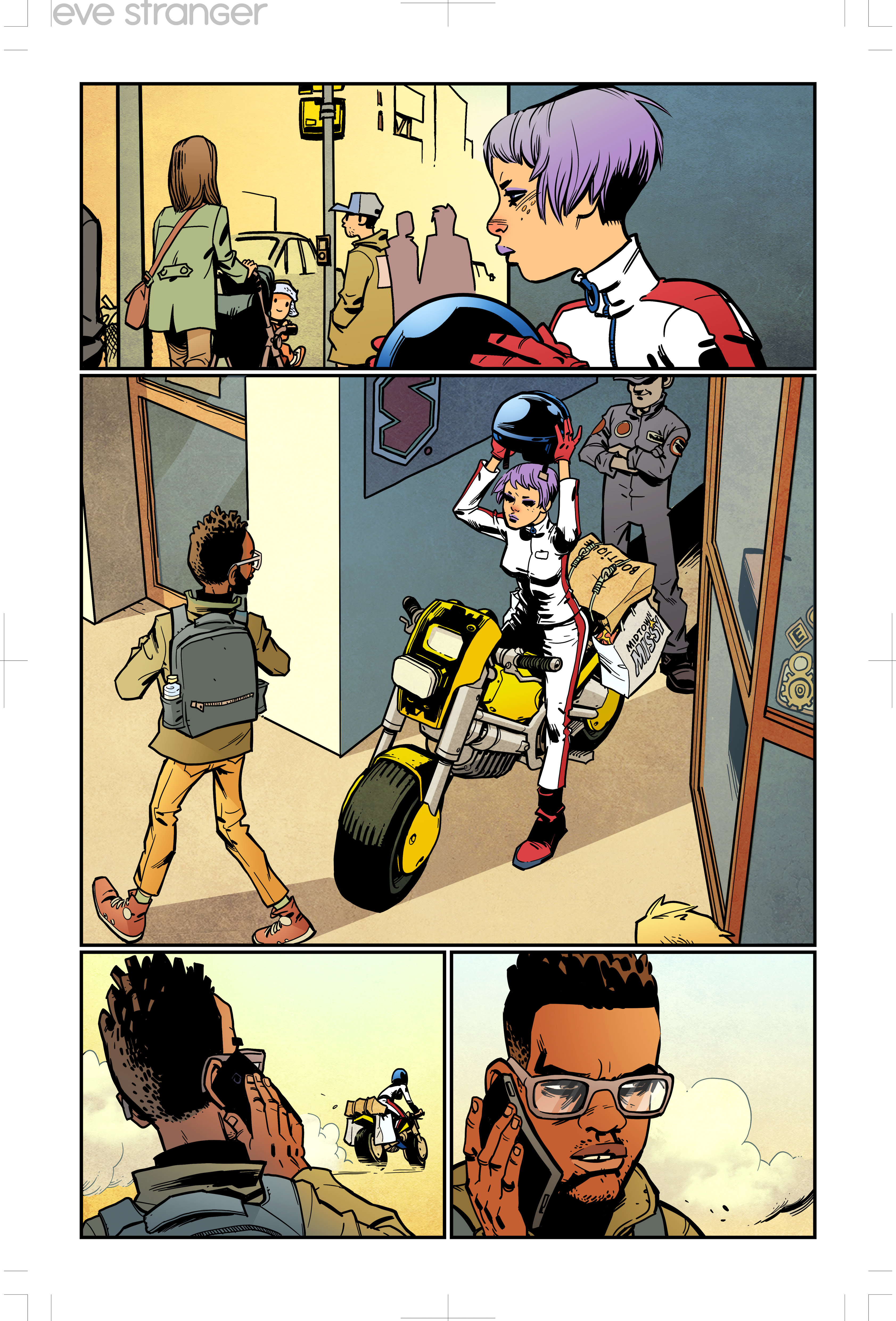 For information on how to secure copies of Eve Stranger, please contact your local comic shop or visit www.comicshoplocator.com to find a store near you.