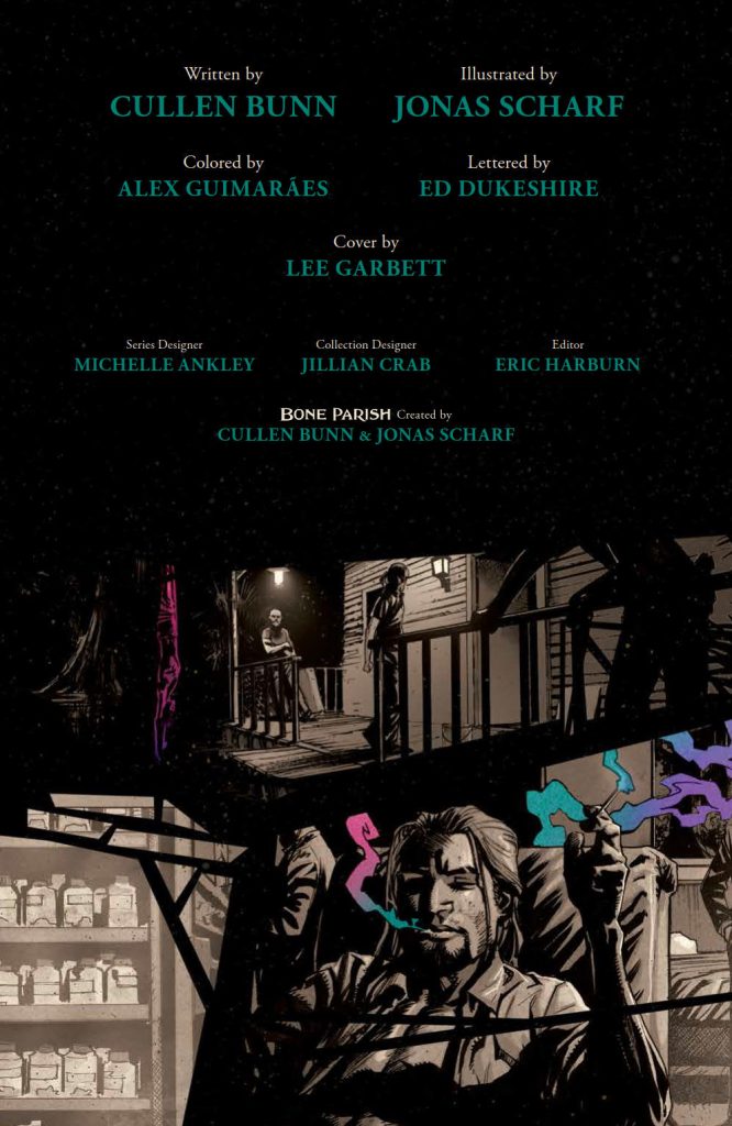 - Eisner Award-nominated author Cullen Bunn (The Empty Man, The Unsound) and illustrator Jonas Scharf (Mighty Morphin Power Rangers) team up for Bone Parish, a haunting blend of horror and crime that takes an unflinching look at how we connect to—and disconnect from—the world around us.