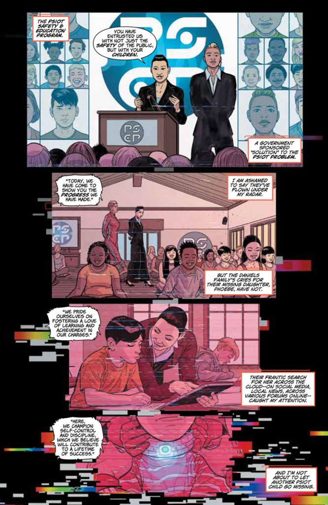 Investigating the disappearance of a young psiot girl, Livewire stumbles upon OMEN’s answer to the psiot “problem,” a facility where young psiots are taken and taught to control their powers. Is this facility the safe haven Livewire’s dreamed of or is there something more sinister to this sanctuary?