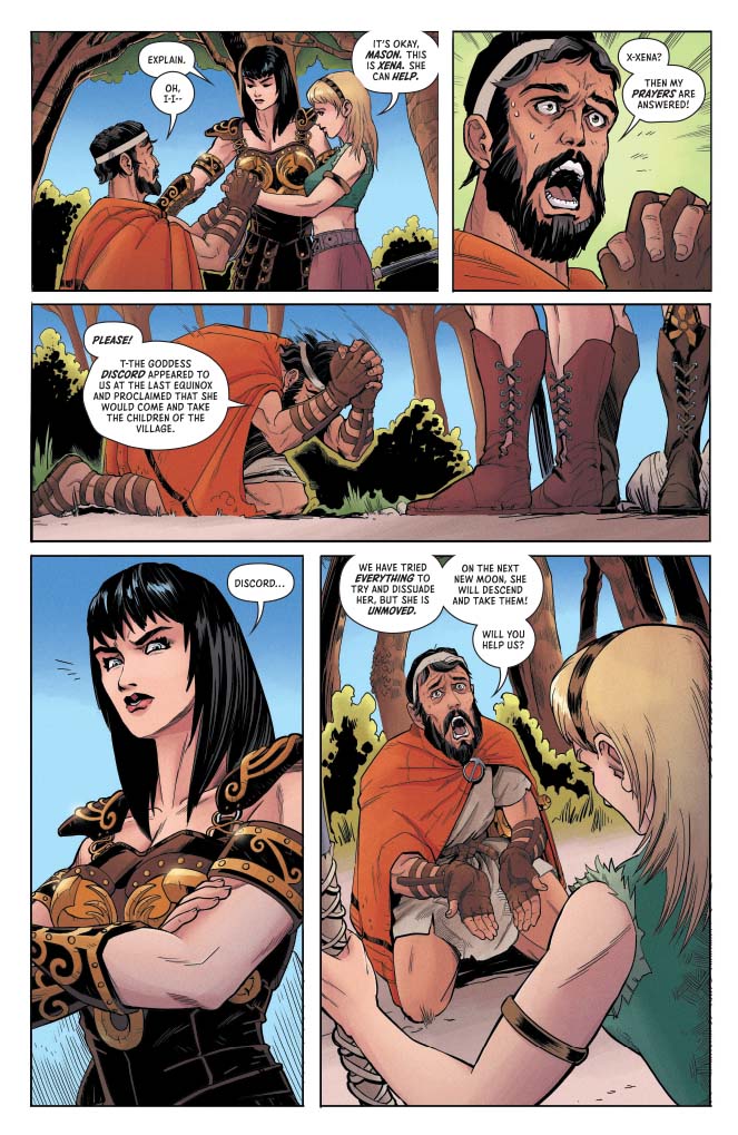 In a time of ancient gods, warlords and kings…a land in turmoil called out for a hero! She was XENA, a mighty princess forged in the heat of battle! In this all-new series, writer VITA AYALA (Black Panther, Shuri, Wonder Woman, The Wilds) and OLYMPIA SWEETMAN throw Xena and her companion Gabrielle headfirst into a mysterious adventure. Can Xena discover the secrets of a village full of super-strong children, before jealous and petty GODS get involved?