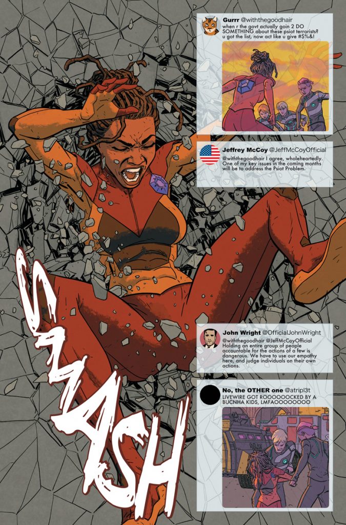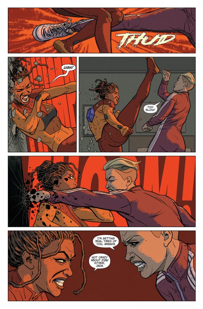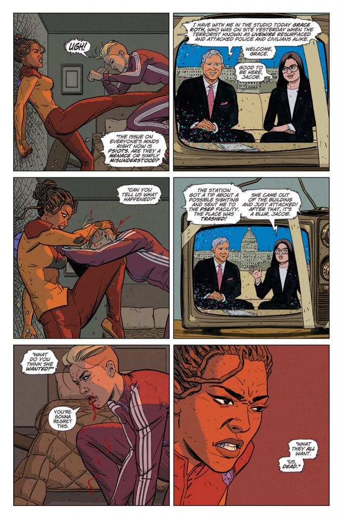 Livewire’s one of the most powerful psiots on the planet, but she doesn’t need powers to kick butt. As she searches for the truth, she’s brought face to face with Jada, and what happens next is a real jaw-dropper. Get ready for melee mayhem in LIVEWIRE #7!
