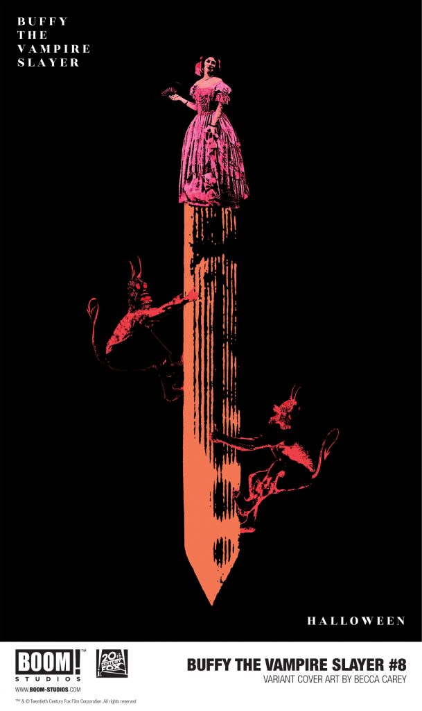 BOOM! Studios, in partnership with 20th Century Fox Consumer Products, unveiled three BUFFY THE VAMPIRE SLAYER #8 covers by Mondo illustrator Marc Aspinall, and artists Kevin Wada (She-Hulk) and Becca Carey. This game-changing issue of the acclaimed series will debut in stores September 4, 2019.