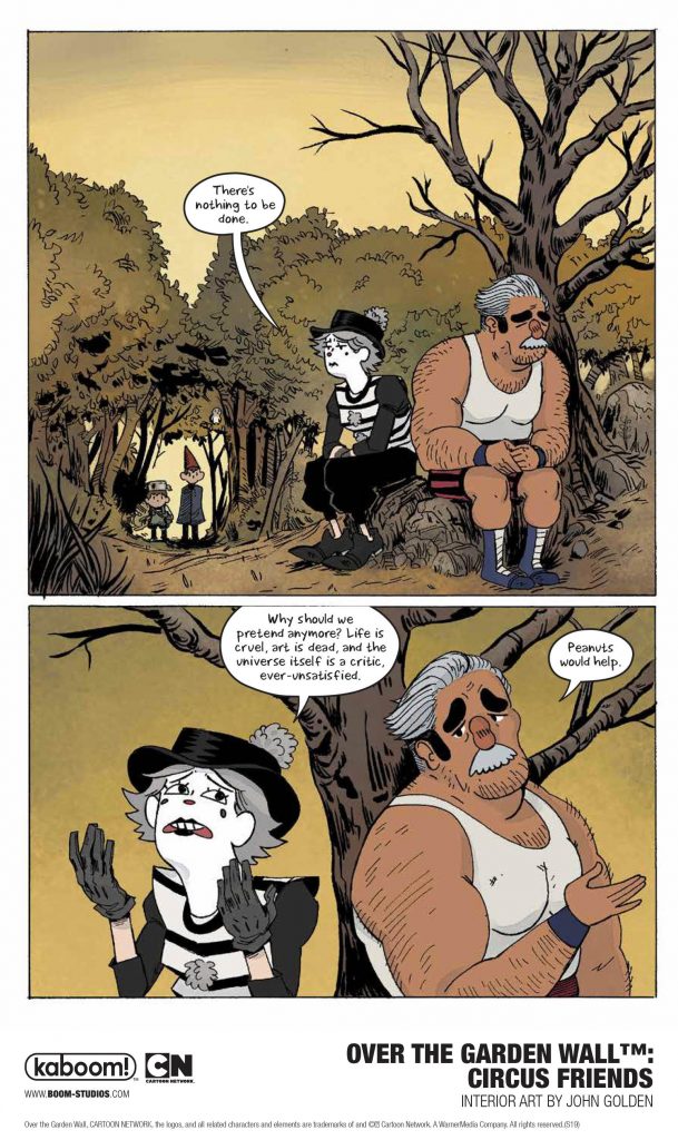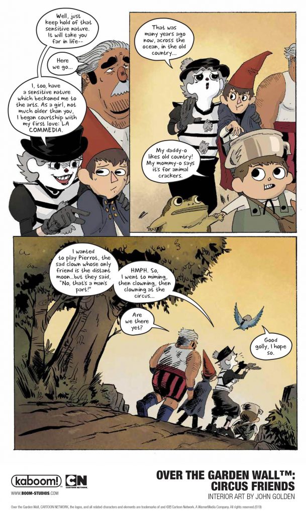 BOOM! Studios revealed a first look at OVER THE GARDEN WALL™: CIRCUS FRIENDS, a brand new original graphic novel set in the world inspired by the Emmy® Award-winning Cartoon Network animated series, Over The Garden Wall.