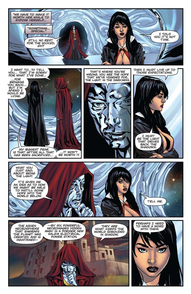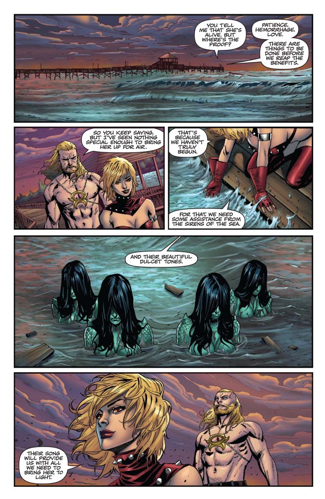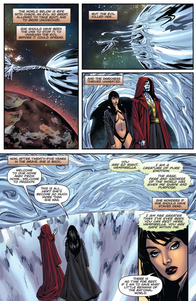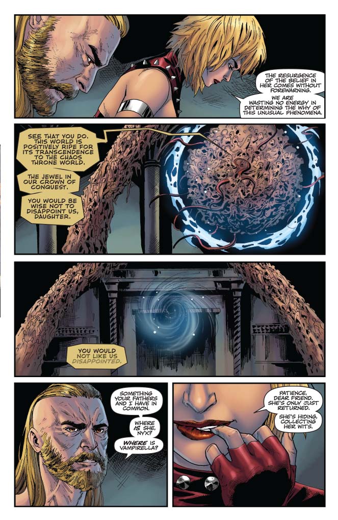 Vampirella and Pendragon united! Nyx faces tough questions about her handling of things from the Chaos Lords! Hemorrhage and Nyx lay a trap for Vampirella! And it’s all heading to the fight between Hemorrhage and Vampirella you’ve been waiting for.
