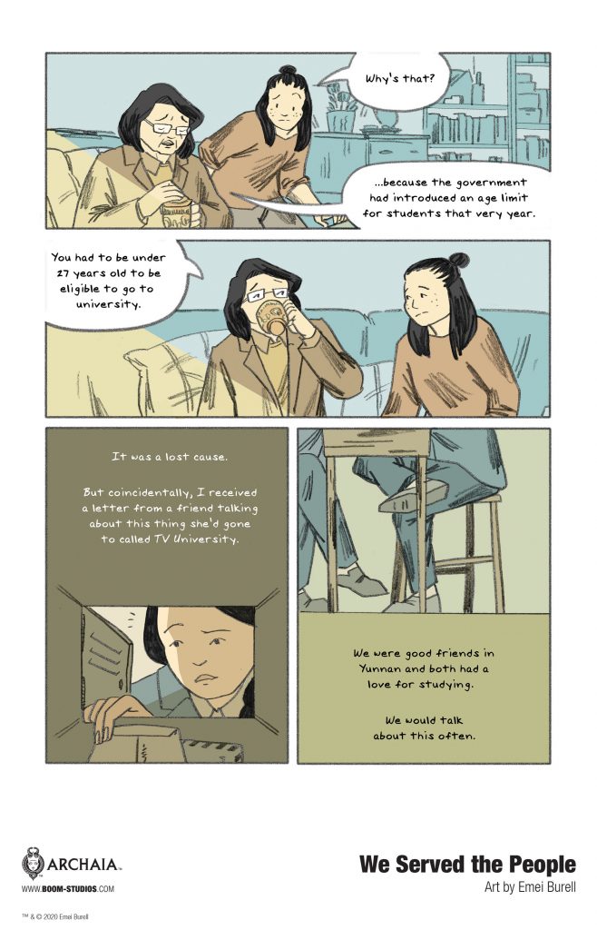 BOOM! Studios today revealed an exclusive new look at original graphic novel WE SERVED THE PEOPLE: MY MOTHER’S STORIES, available on April 22, 2020, from Eisner-nominated cartoonist Emei Burell as she breathes new life into her mother’s stories of growing up in mid-1960’s Communist China.