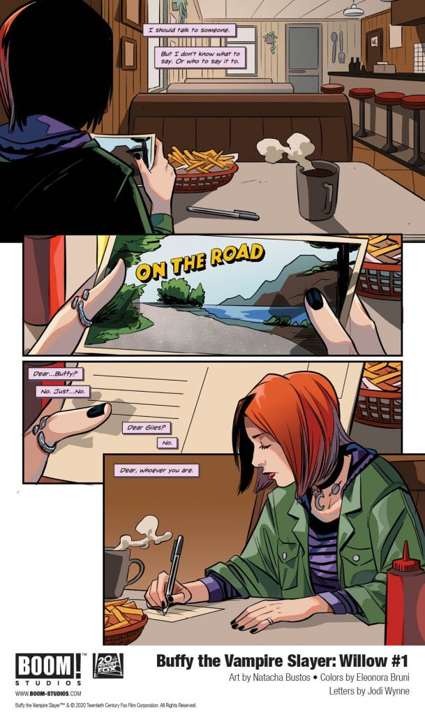 BOOM! Studios, in collaboration with 20th Century Studios, is proud to reveal a first look at BUFFY THE VAMPIRE SLAYER: WILLOW #1, The premiere issue of a brand new five-issue limited series, from award-winning writer Mariko Tamaki (Laura Dean Keeps Breaking Up With Me, Harley Quinn: Breaking Glass), acclaimed artist Natacha Bustos (Moon Girl and Devil Dinosaur), colorist Eleonora Bruni, and letterer Jodi Wyne, that brings Willow face to face with the truth of her past…and plants the seeds for a future no one could’ve predicted.