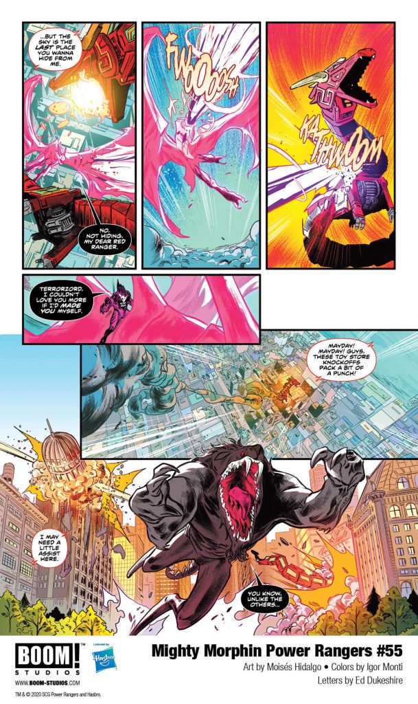 Print copies of MIGHTY MORPHIN POWER RANGERS #55 will be available on October 21, 2020 exclusively at local comic book shops (use comicshoplocator.com to find the one nearest you), or at the BOOM! Studios webstore. Digital copies can be purchased from content providers like comiXology, iBooks, Google Play, and Madefire.