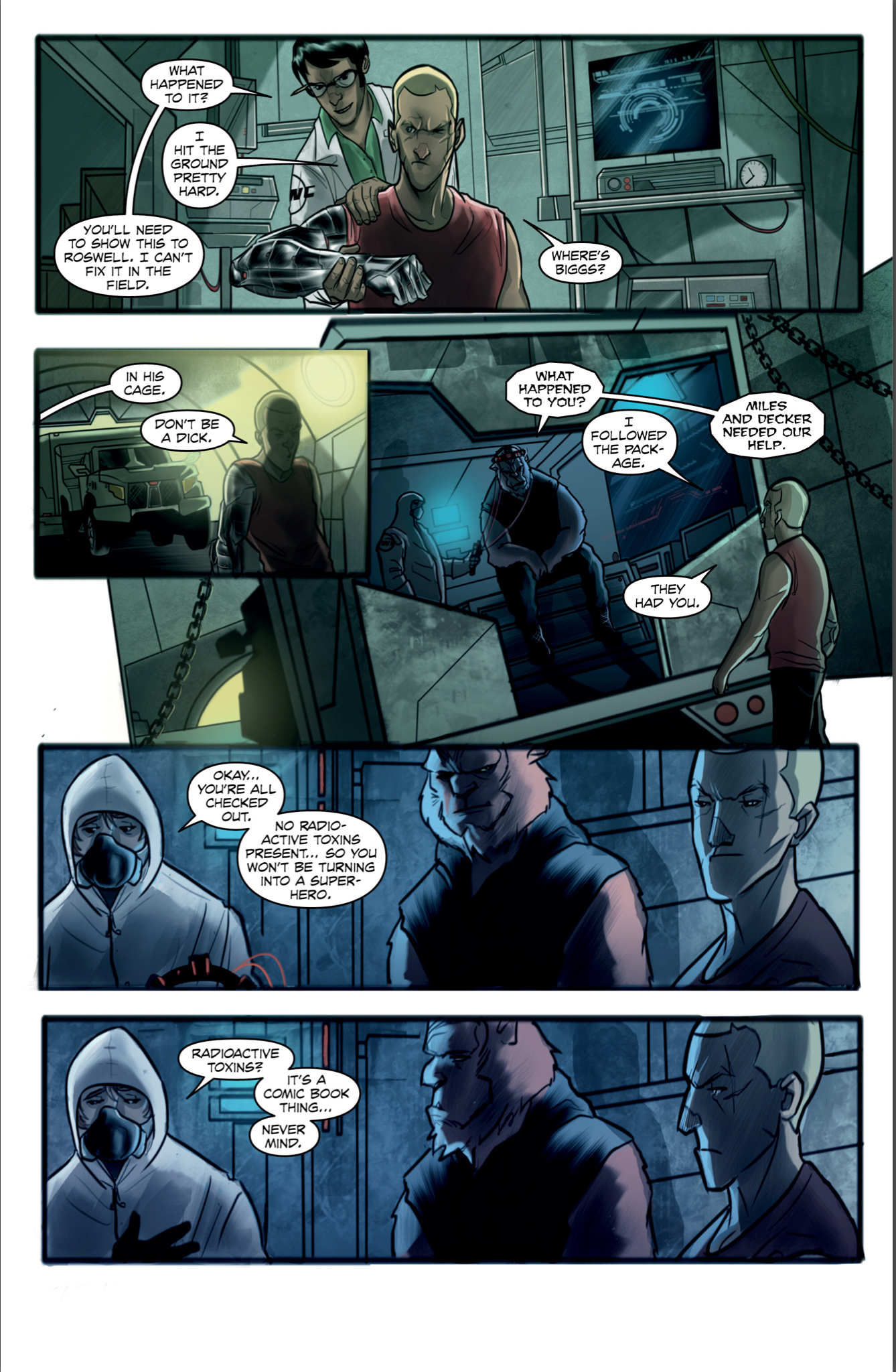 Shelter Division operatives Chaplin & Biggs are called in on a supposed robbery. Once they’re on the scene, they discover that they weren’t quite ready for the nature of these perps. One, an oversized mutation with ridiculously enhanced strength is able to keep Biggs busy, while the other proves fast enough to outrun Chaplin long enough to teleport away. These simple facts are made a little more impressive when you factor in that Chaplin is a cyborg with enhanced speed, strength, and targeting systems, & Biggs is a Sasquatch.