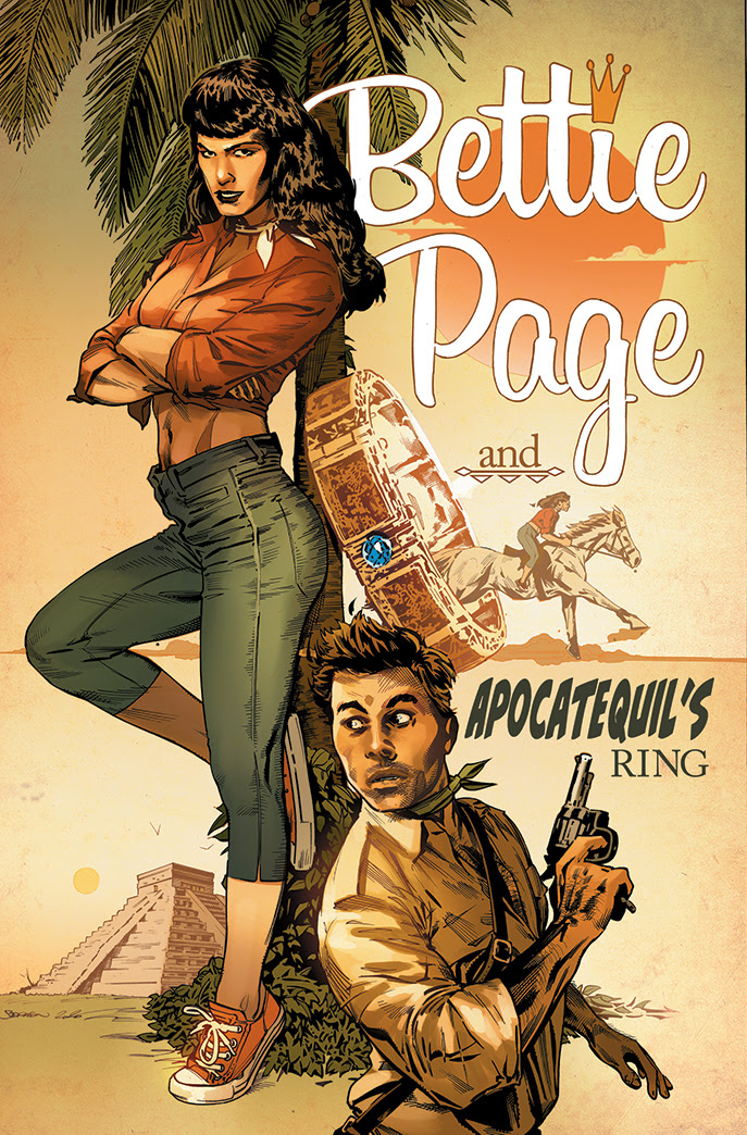 Dynamite and Stephen Mooney reveal a never before told thrilling chapter in the life of pinup icon Bettie Page, in the Apocatequil’s Ring comic book available only on Kickstarter right now!